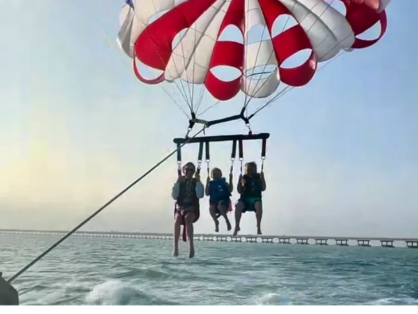 Your flight begins seated on the back deck of the parasailing boat with a friend or two! In seconds you are gently lifted into the air, so sit back and relax enjoying the views overlooking the beaches and pristine waters here at South Padre Island, Texas! Come join us for a once in a lifetime exhilarating excursion and all of the breathtaking views while parasailing with us! We are looking forward to "flying" with you!